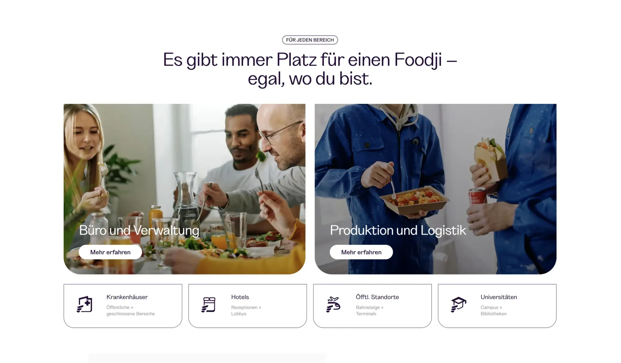Foodji provides fresh and nutritious food to startups, mid-sized companies and corporations around the clock, thanks to an innovative technology platform and a comprehensive service. As part of the brand relaunch, the company website was also redesigned from the ground up.